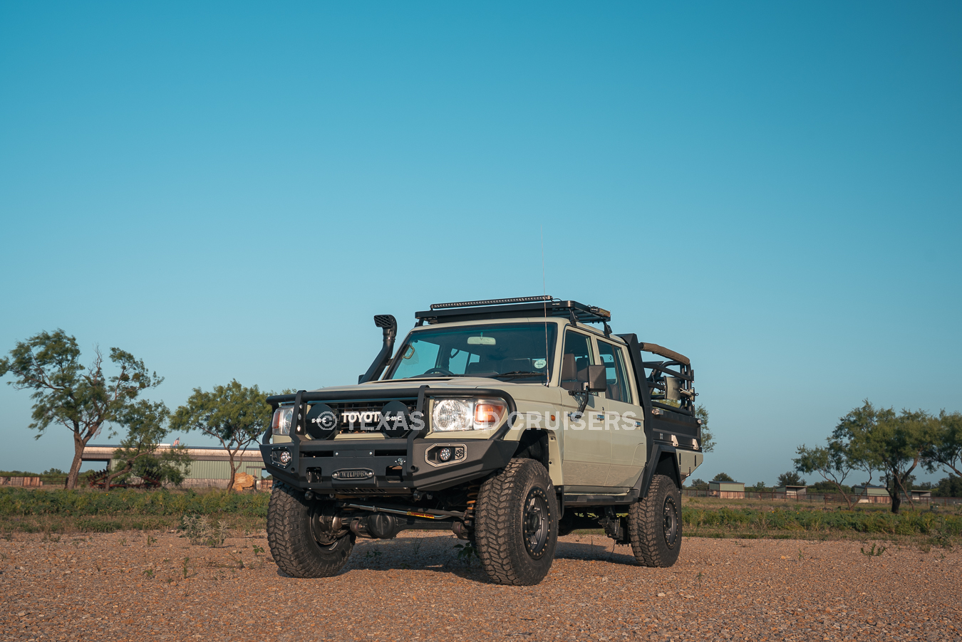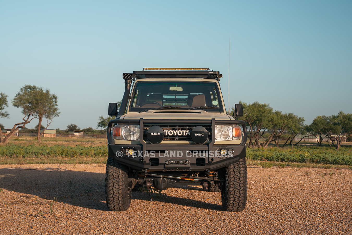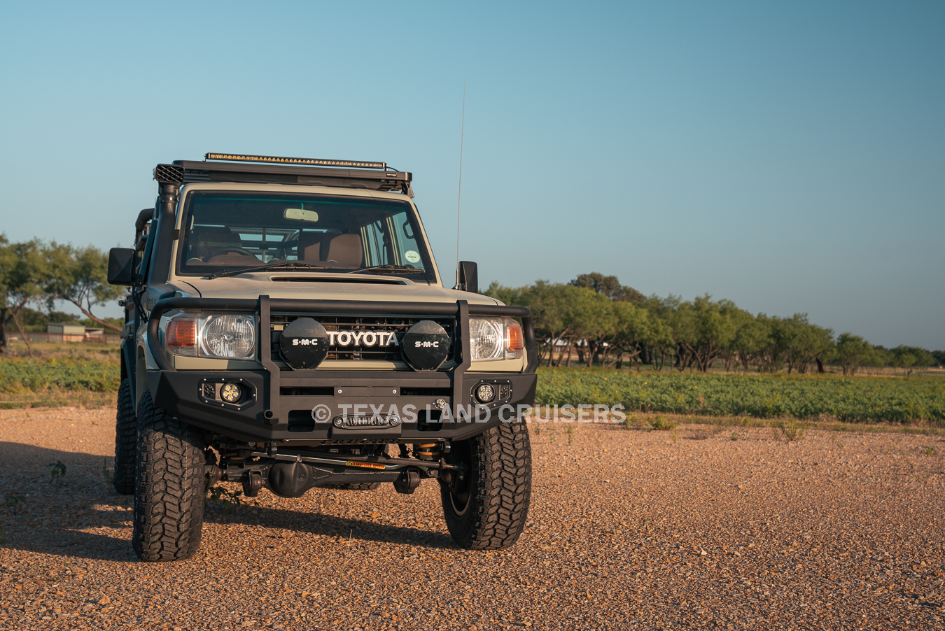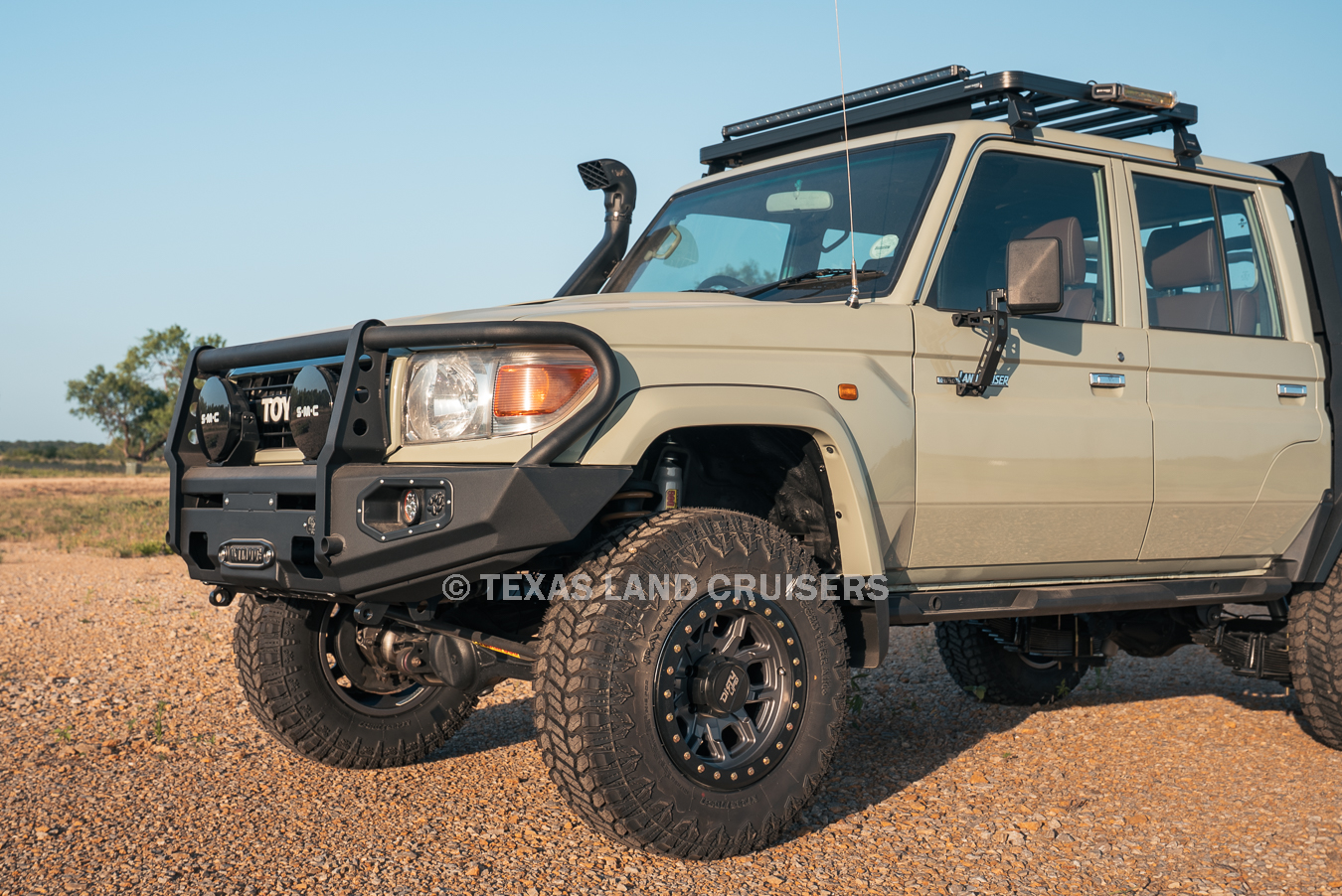 2014 Toyota Land Cruiser 79, complete frame off restoration in Nardo Green over a Chocolate leather interior. Under the hood is a 6 cylinder Cummins 5.9L diesel backed by a rebuilt 5 speed manual, new suspension, new lockers, rebuilt differentials and hubs, and a recoated chassis. The work speaks for itself the moment you see it in person. Inside you get a new leather interior with a CarPlay capable touch screen, A/C system, and cruise control. Outside it sits on new Dirty Life rims with 33" A/T tires, custom paint, a Safari flat bed, and a Wildog bumper. Options include a leather upgrade, 2" lift, SMC light outfit, off road tools, water tanks, engine and sound upgrades, and rock sliders. A fully sorted 79 series that is ready for real use on and off-road.